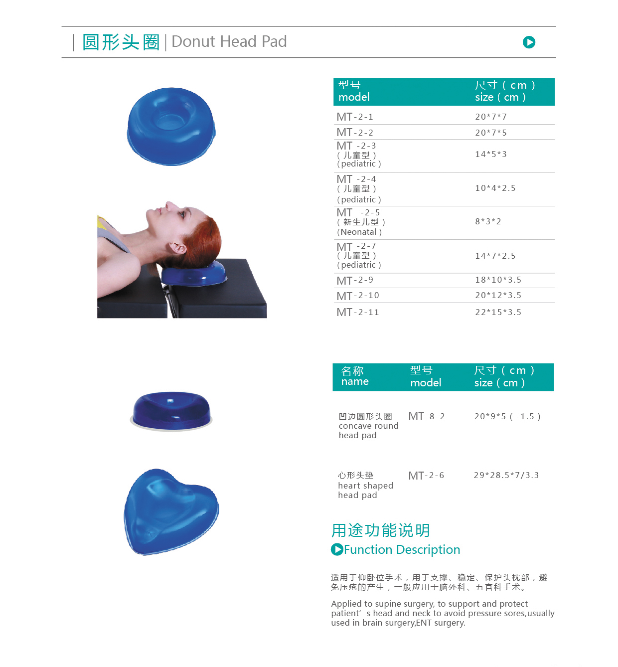 【產品用途】:適用于仰臥位手術,用于支撐、穩定、保護頭枕部,避免壓瘡的產生。